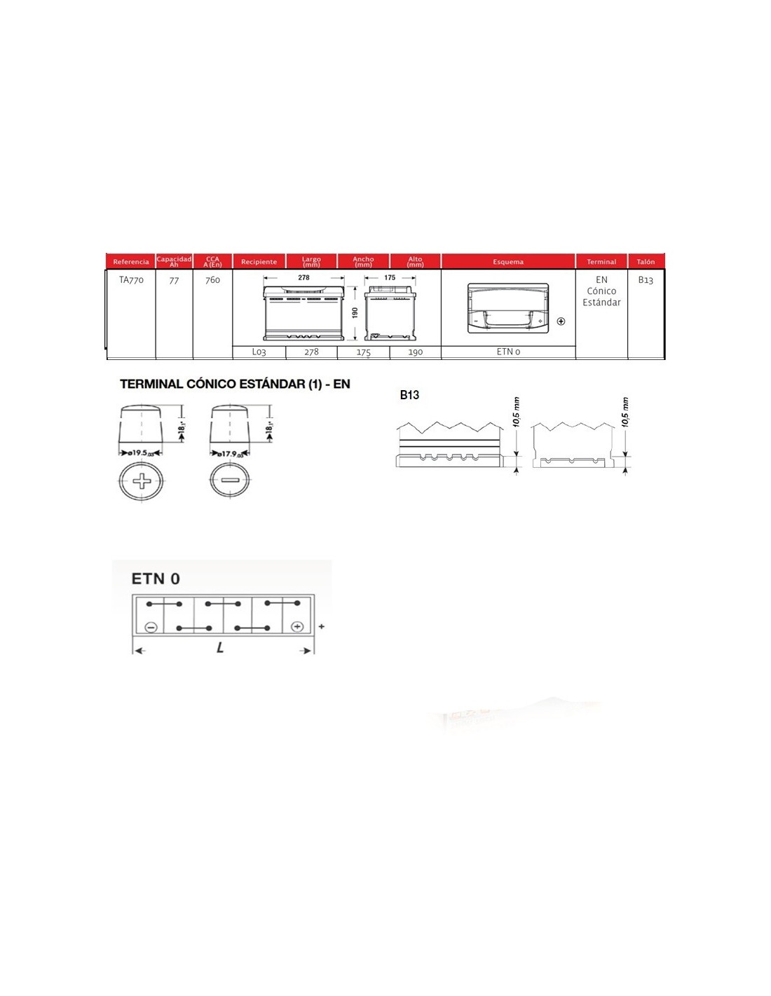 BATERIA COCHE EXIDE 77AH 12V 760A (EN) GAMA PREMIUM DIMENSIONES 278 x 175 x 190 mm POSITIVO EN BORNE DERECHO 2 AÑOS GARANTIA