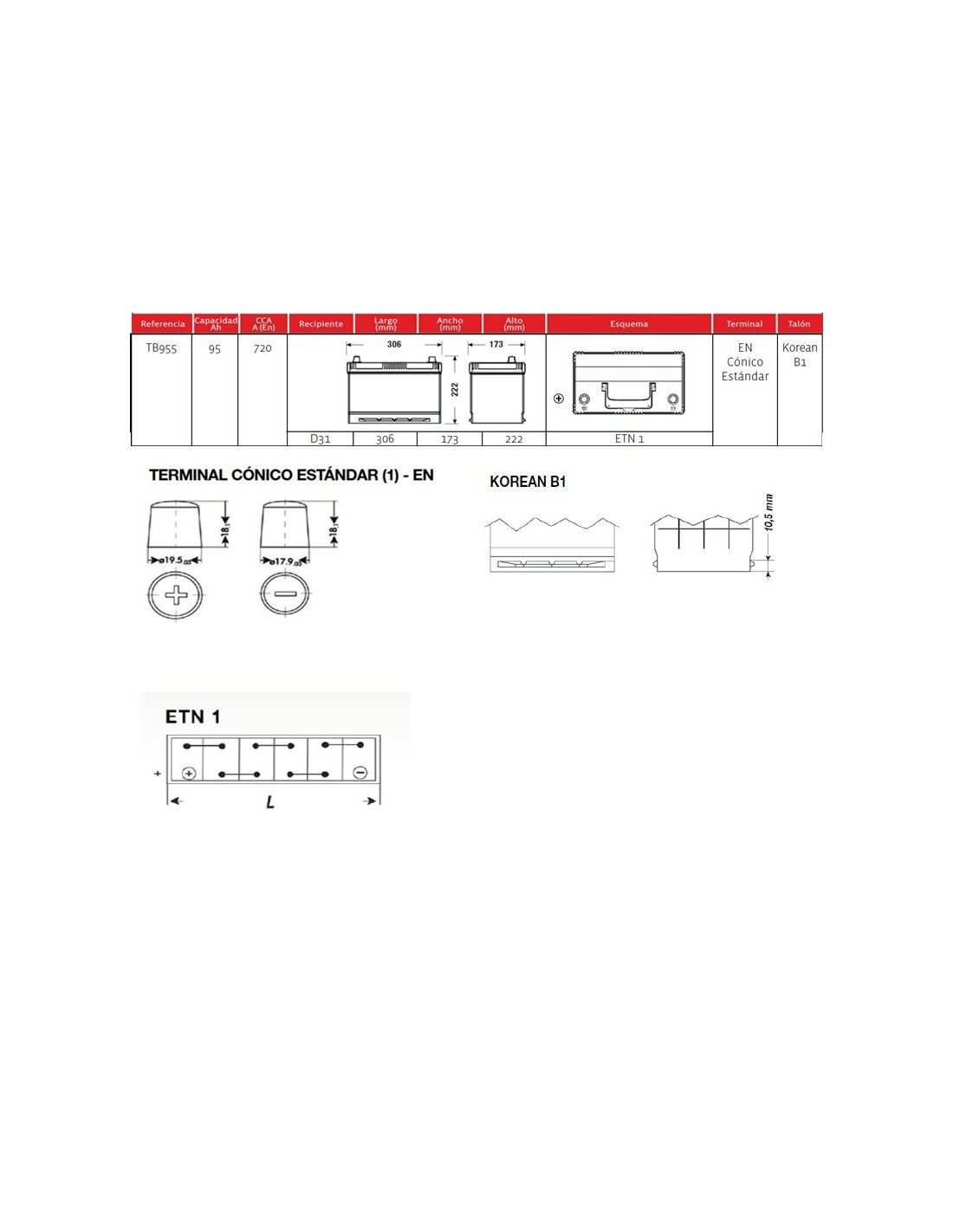 BATERIA COCHE EXIDE 95AH 12V 720A (EN) GAMA EXCELL DIMENSIONES 306 x 173 x 222 mm POSITIVO EN BORNE IZQUIERDO 2 AÑOS GARANTIA