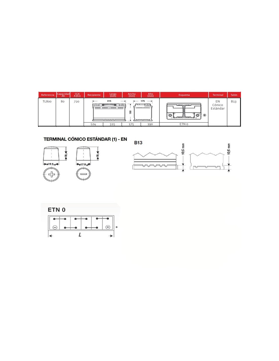 BATERIA COCHE EXIDE 80AH 12V 800A (EN) GAMA EFB START-STOP DIMENSIONES 315 x 175 x 190 mm POSITIVO BORNE DERECHO 2 AÑOS GARANTIA